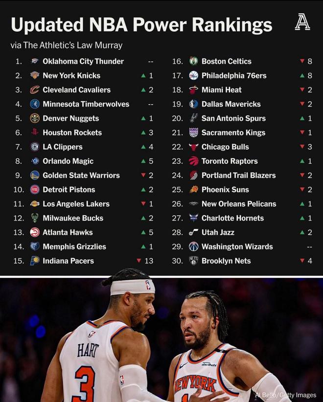 TA最新NBA戰(zhàn)力榜:雷霆領(lǐng)跑,火箭快船分列67,勇士9湖人11