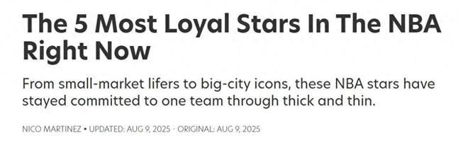 一人一城!美媒評現(xiàn)役最忠誠球員TOP5:約基奇僅第4庫里強(qiáng)勢奪魁